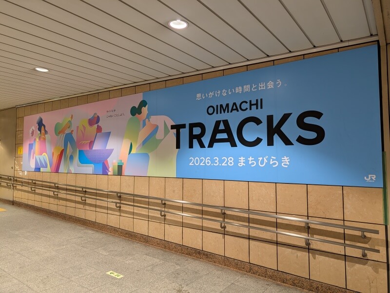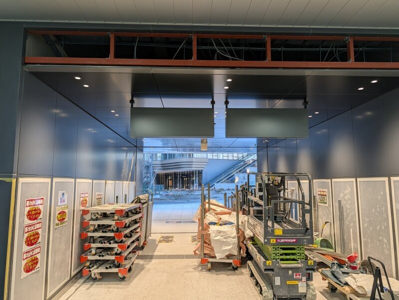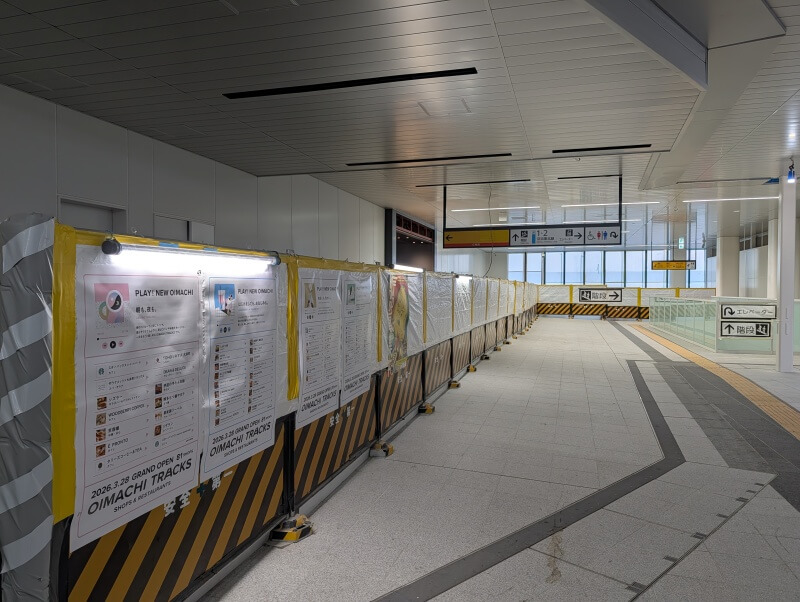 東急大井町線の大井町駅改札とJR大井町駅開催の間の空間から、開業予定の「大井町トラックス(OIMACHI TRACKS)」が見えていました。
