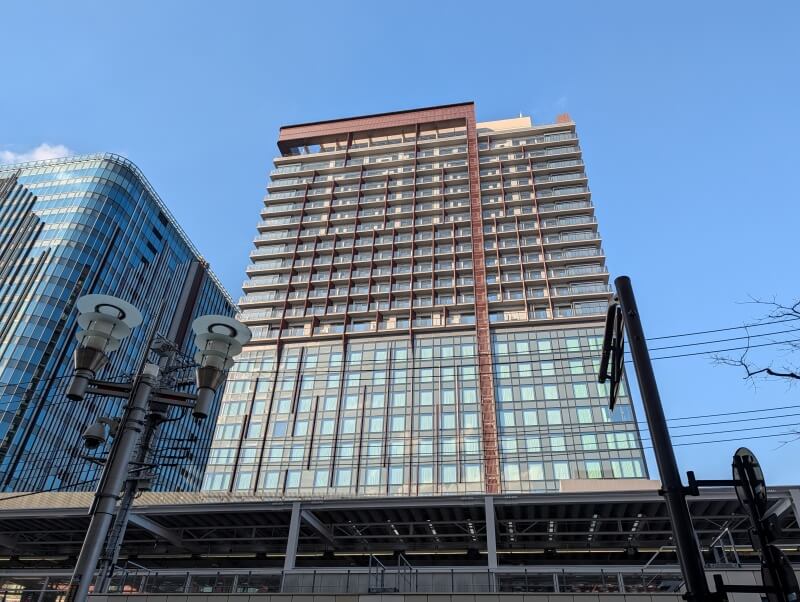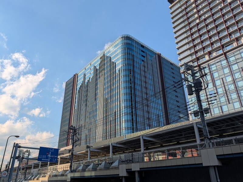 STATION PLAZAから、OIMACHI TRACKS HOTEL & RESIDENCE TOWERの高層階を見上げた様子です。