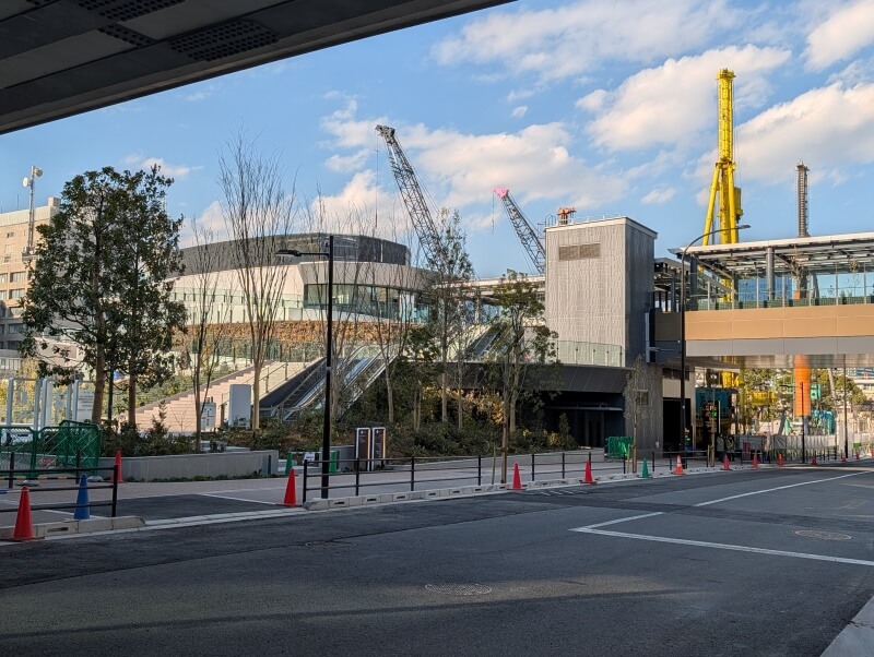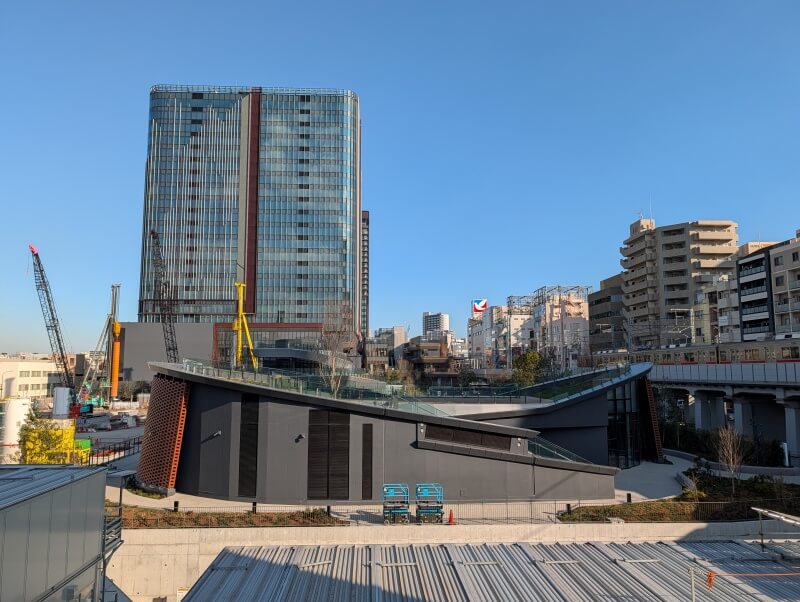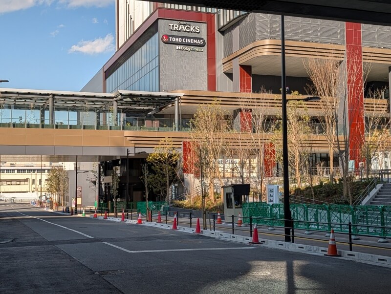鮫洲大山線沿いから、「OIMACHI TRACKS BUSINESS TOWER」低層階でオープン予定の、「TOHOシネマズ 大井町」側を見た様子です。