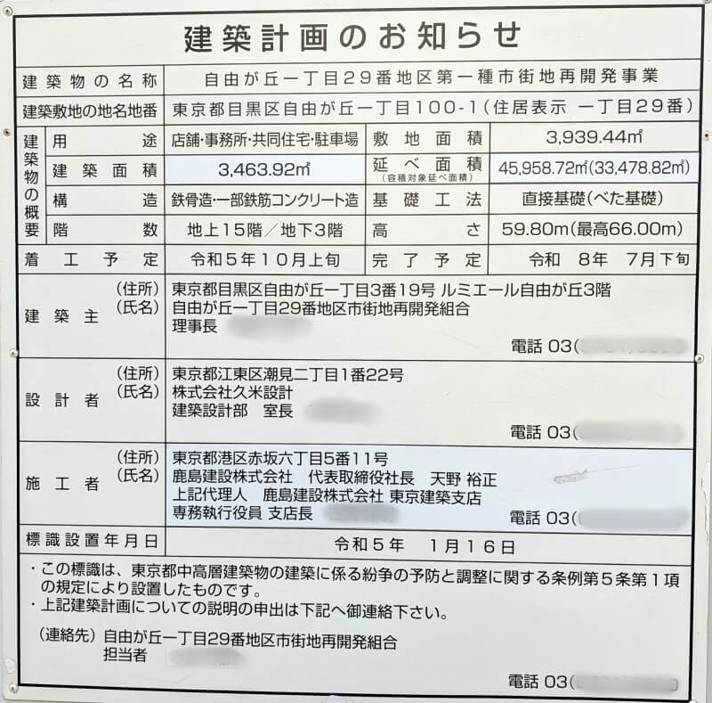 建築主:自由が丘一丁目29番地区第一種市街地再開発組合