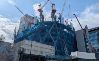 自由が丘駅の北側で建設中の、15階66m「自由が丘一丁目29番地区第一種市街地再開発事業」の様子です。