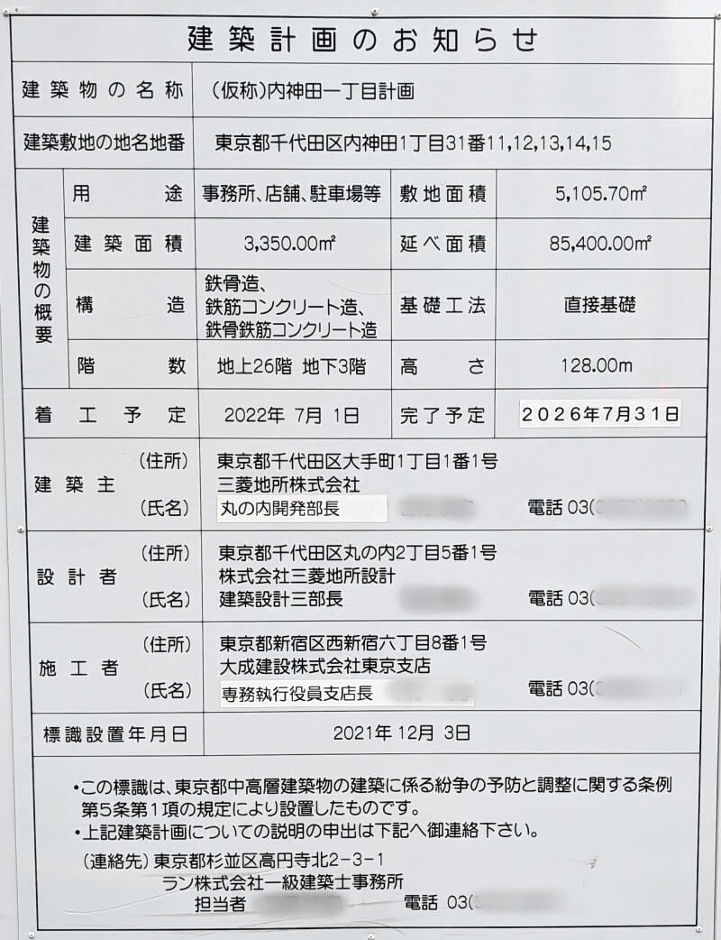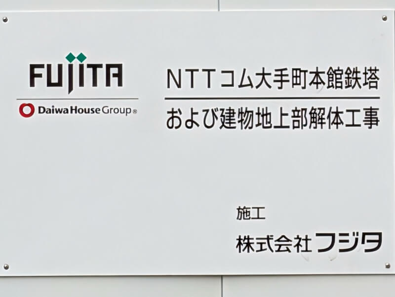 現地には、NTTコム大手町本館鉄塔および建物地上部解体工事のお知らせが掲示されていました。