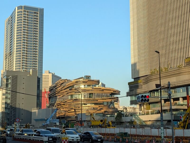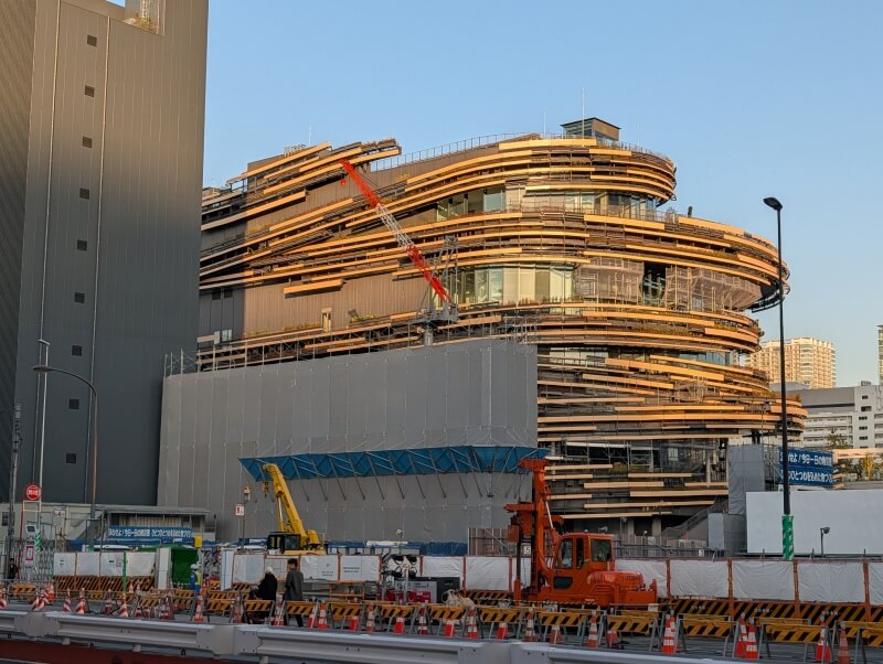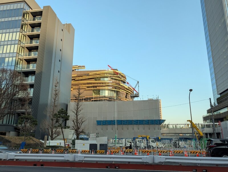 高輪大木戸跡付近から、施行中の建物を見た様子です。