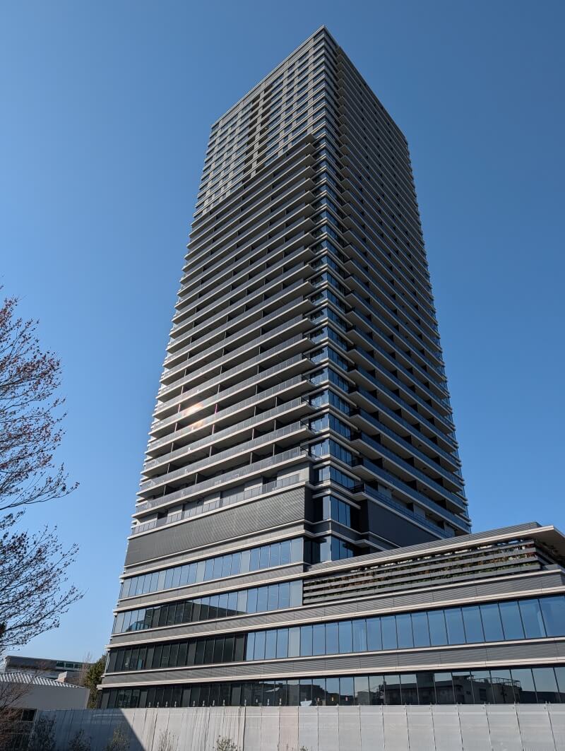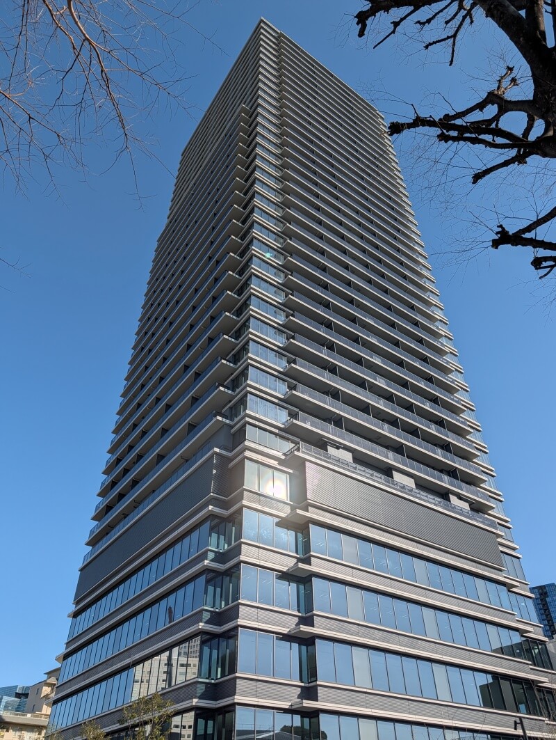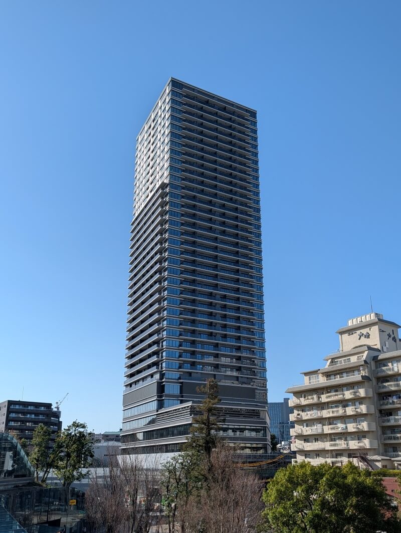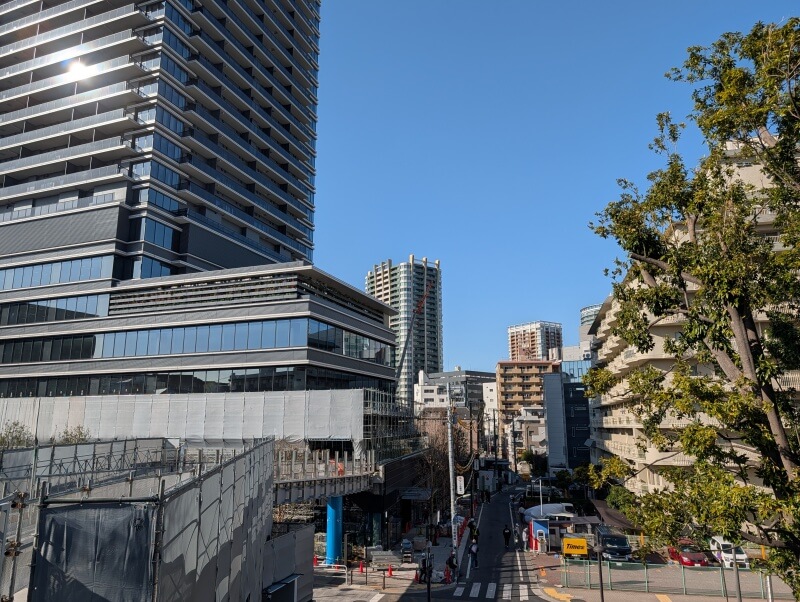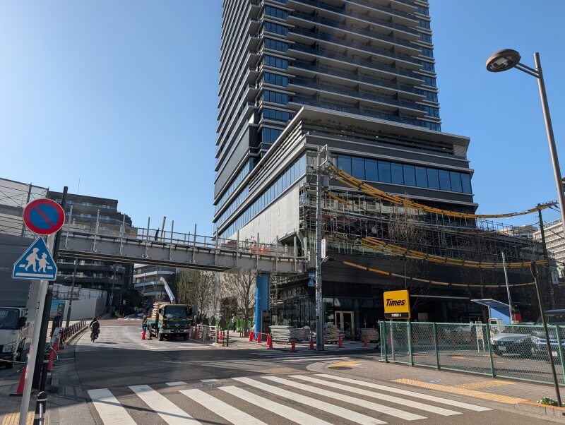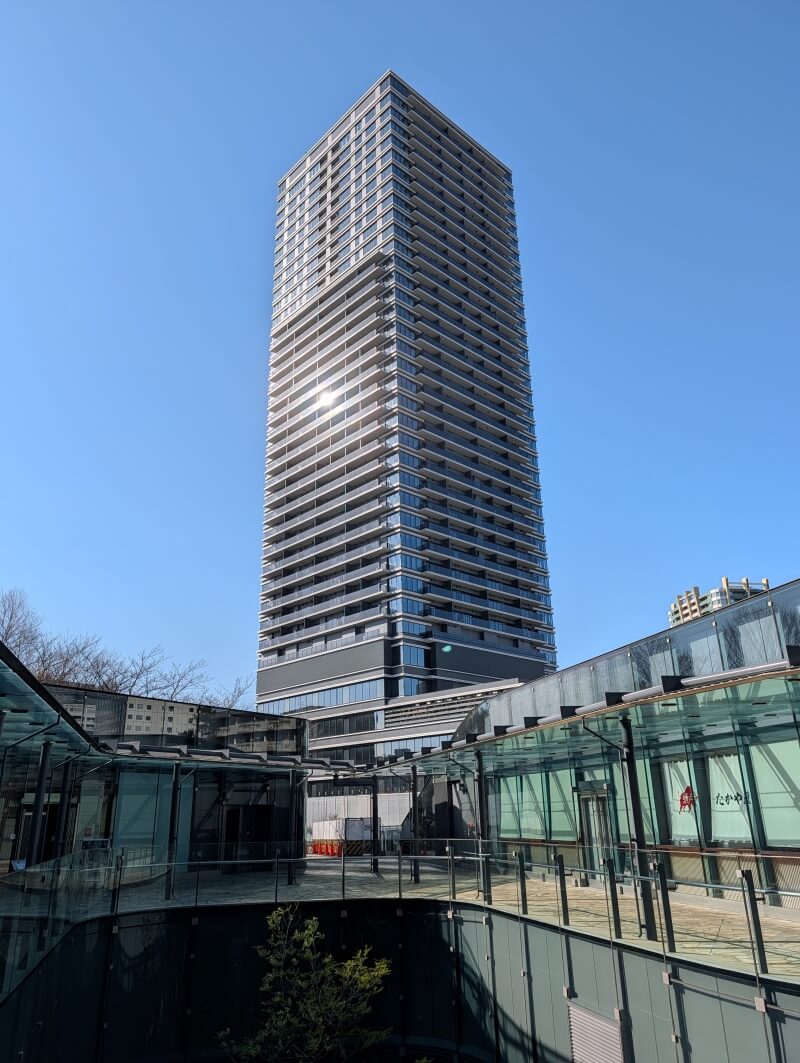 「大崎ステーションレジデンス」に繋がる歩行者デッキ側に移動し、建物を見た様子です。