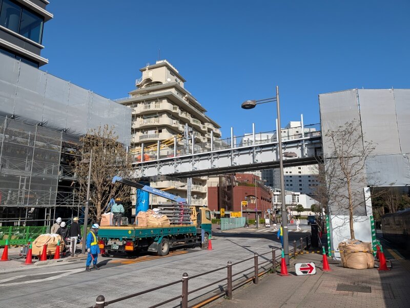 ThinkPark Towerと大崎ステーションレジデンスの間の歩行者デッキは、工事中でまだ通行出来ませんでした。