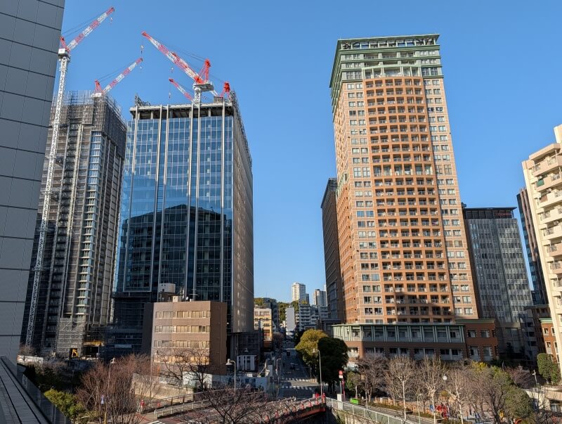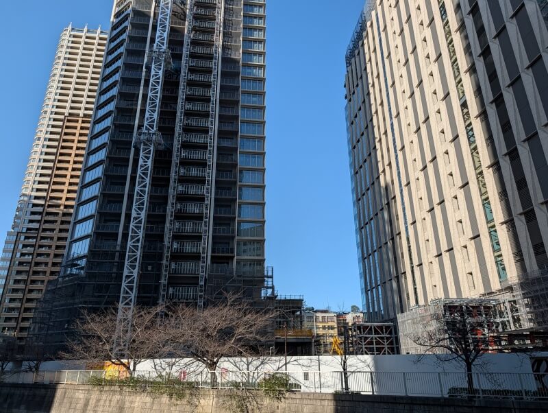 五反田ふれあい水辺広場近くの、山本橋から再開発の敷地を見た様子です。