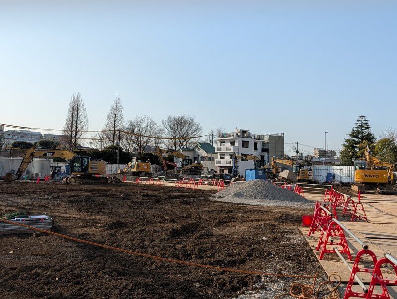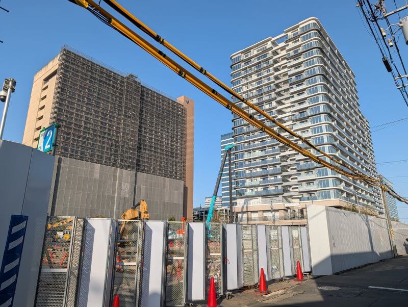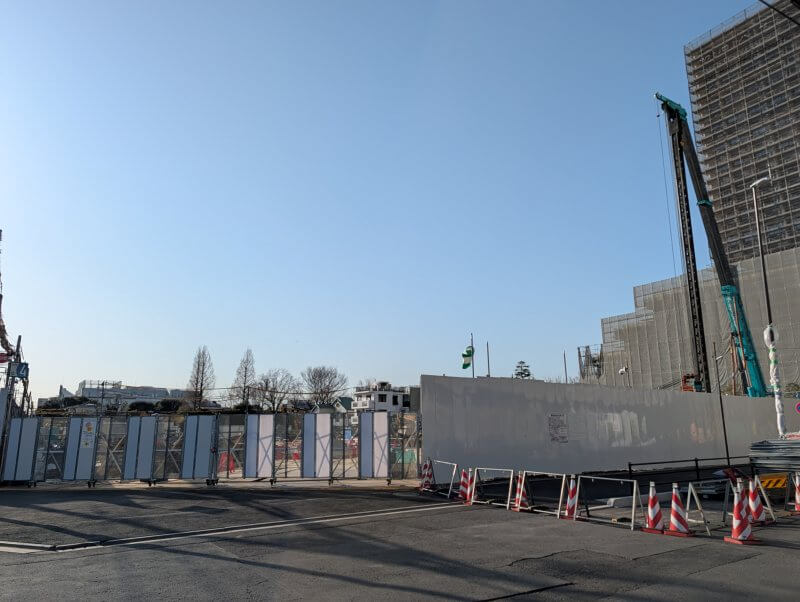 「パークシティ中野 ザ タワーブリーズ」の建物そばから、再開発の敷地を見た様子です。