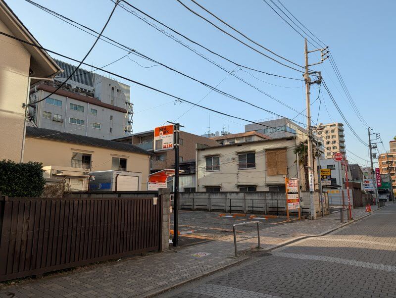 再開発は着工していないので、再開発前の「(仮称)中野四丁目西地区市街地再開発事業」の敷地を見てきました。南西側の「けやき通り」から見た、再開発の敷地の様子です。