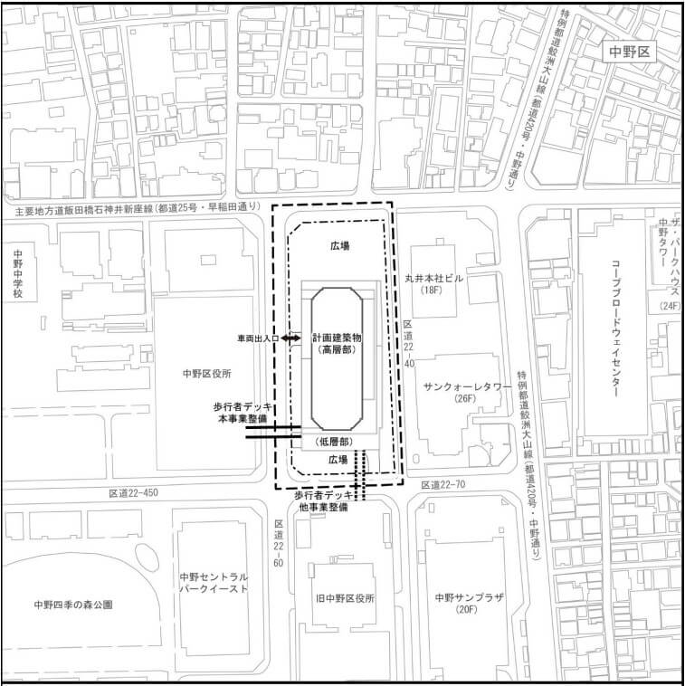 計画地:東京都中野区中野四丁目6番、7番