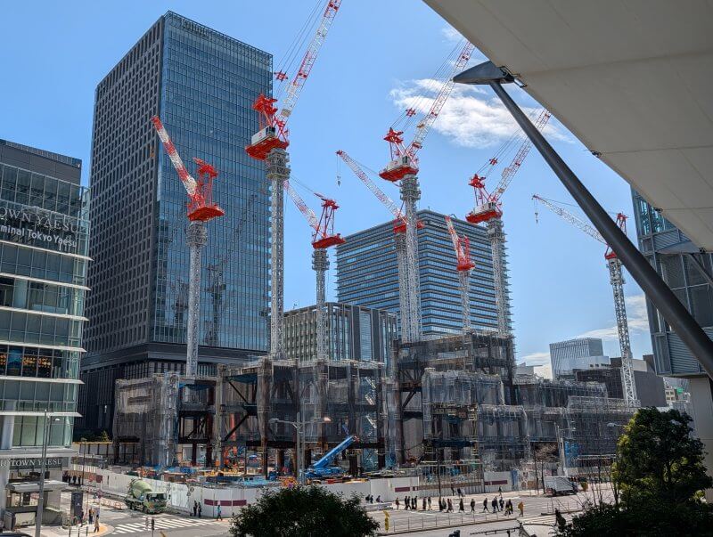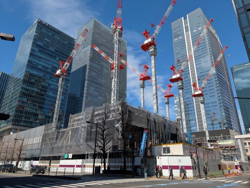 東京駅八重洲口のグランルーフ2階から、再開発の敷地を見た様子です。