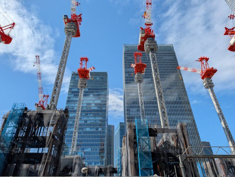 再開発の敷地には、8基のタワークレーンが出現していました。