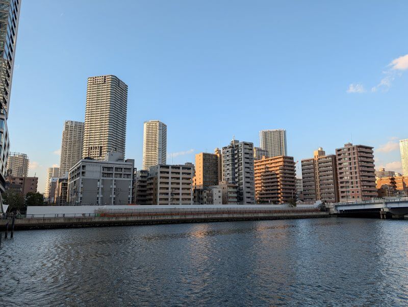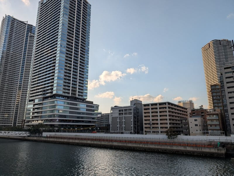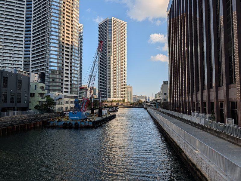 清澄通りの新島橋の上から、朝潮運河側を見た様子です。