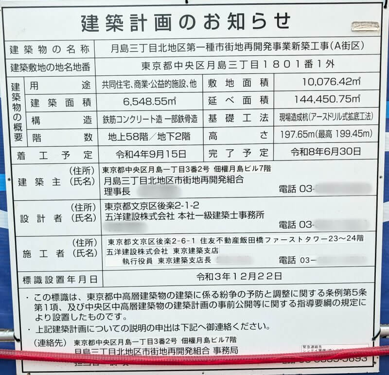建設:月島三丁目北地区市街地再開発組合