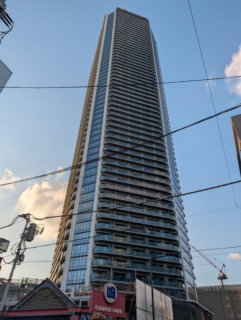 月島のもんじゃストリート南側で建設中の、58階199m「グランドシティタワー月島」(月島三丁目北地区第一種市街地再開発事業)の様子です。