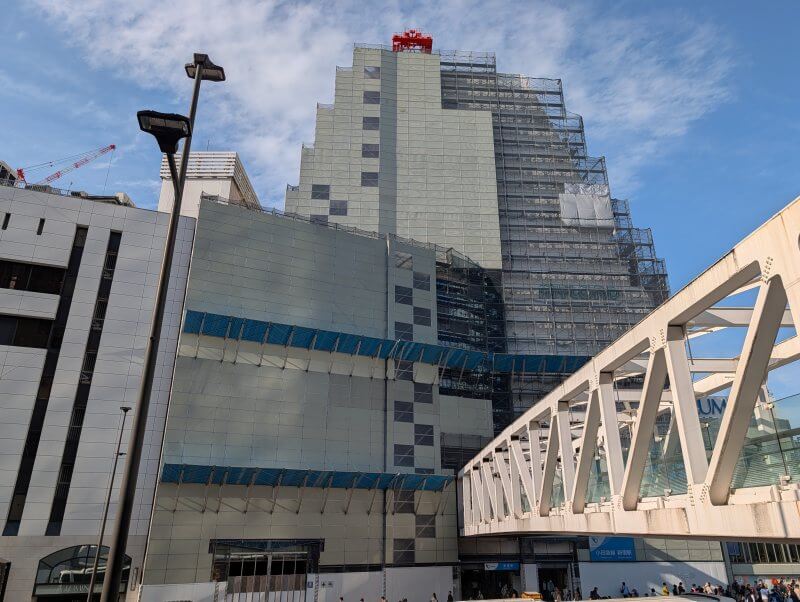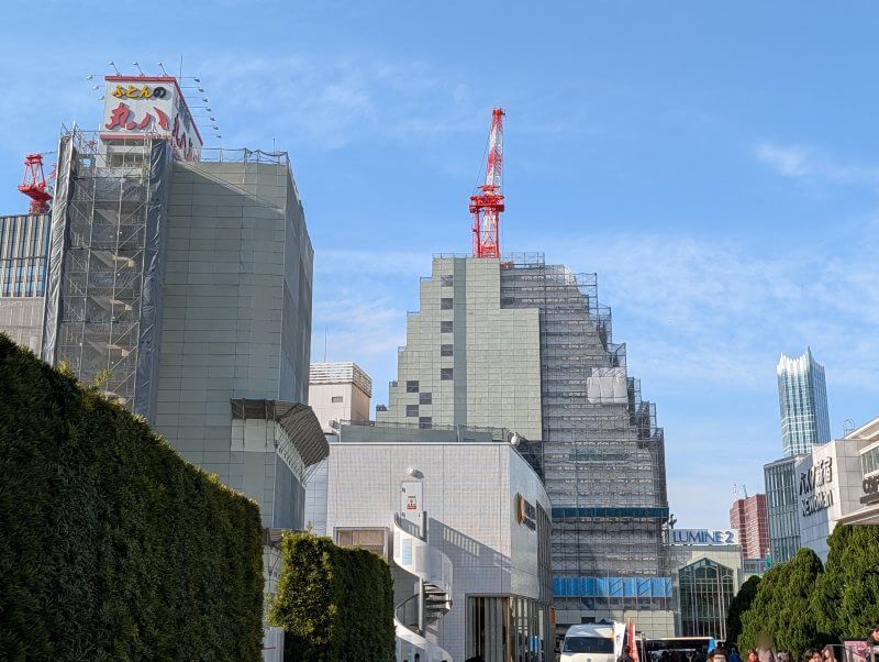 「小田急ハルク」傍のカリヨン橋近くから、建替え工事中の「小田急百貨店」跡地側を見た様子です。