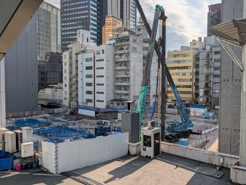 西新宿一丁目交差点から、解体工事の敷地を見た様子です。