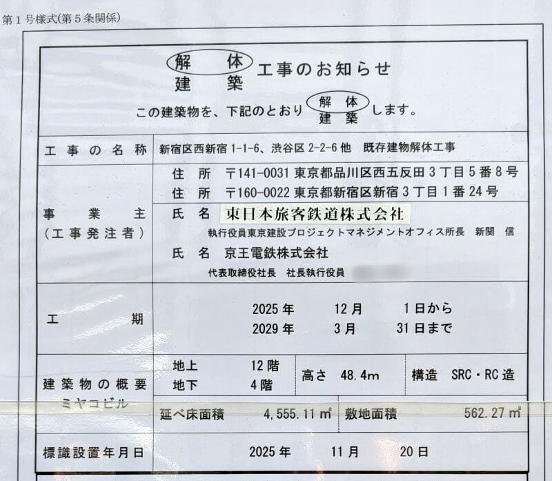「新宿駅西南口地区開発計画 南街区」の解体工事もはじまったので、ついでに撮影しています。