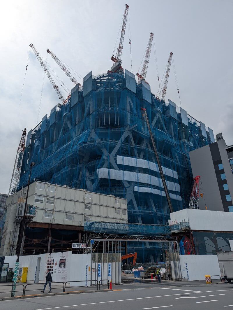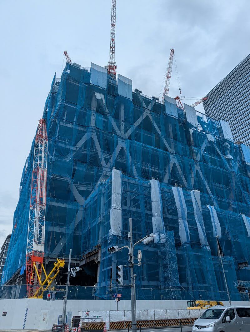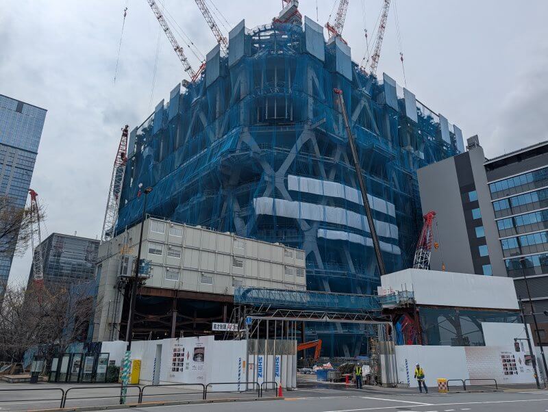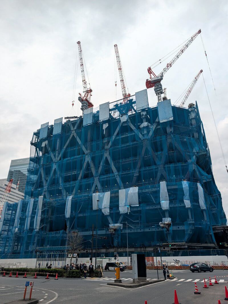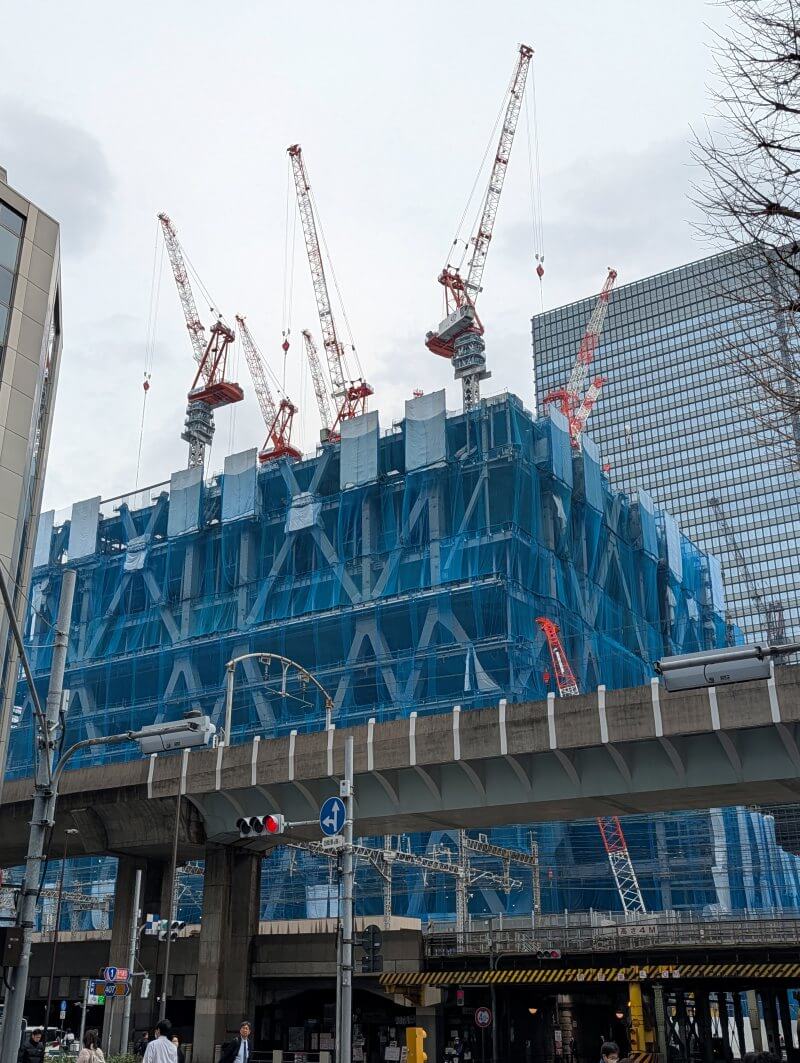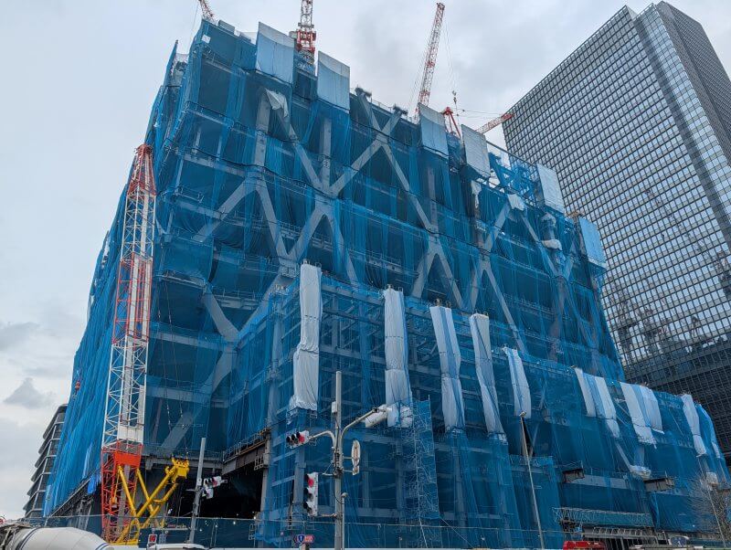 東京日本橋口側から施工中の建物を見た様子です。