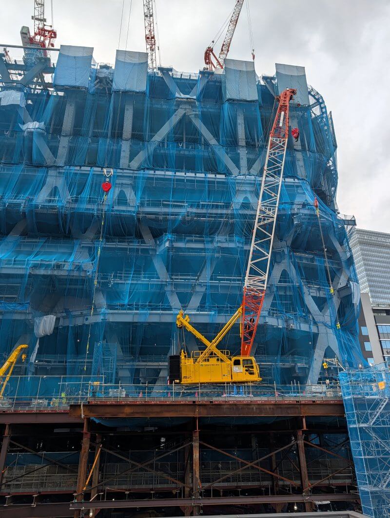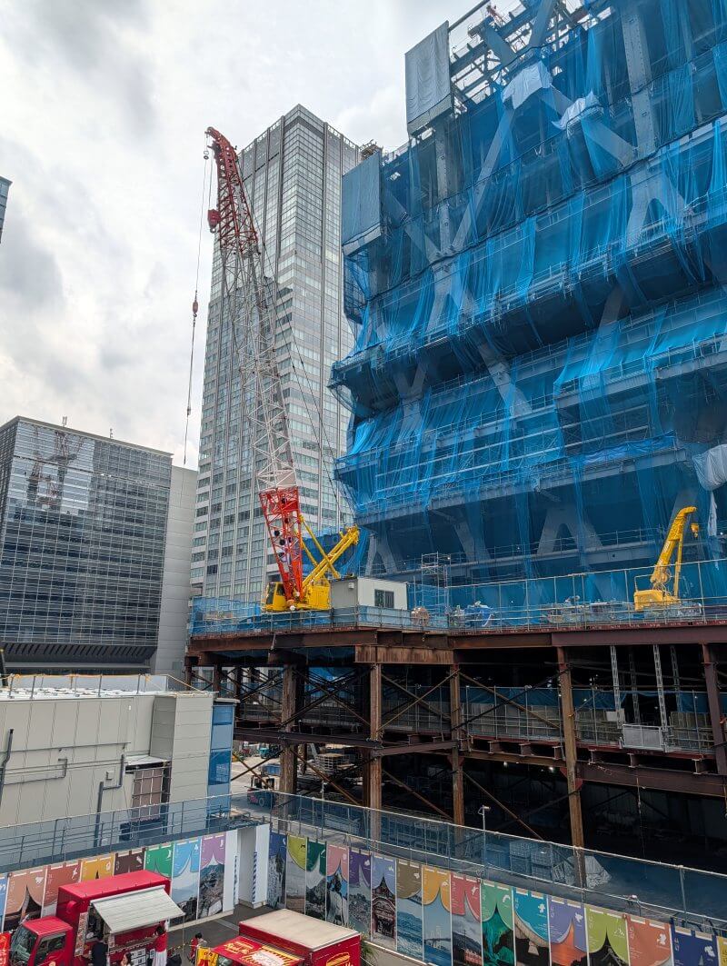 同じく、常盤橋タワーの2階から、施行の建物の北東側を見た様子です。