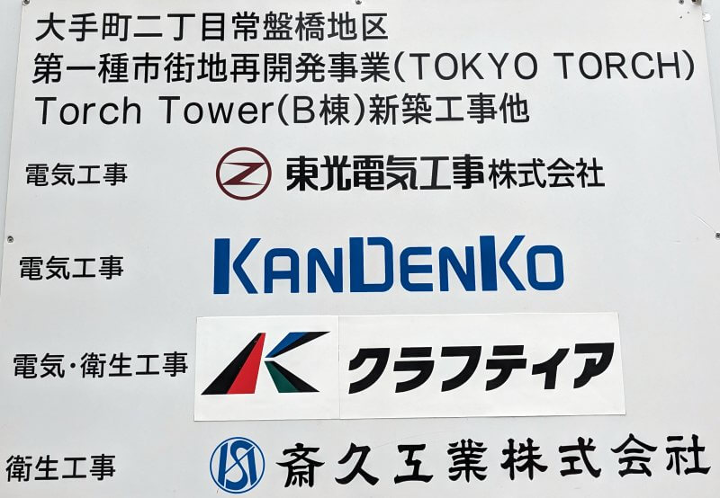 電気工事は、東光電気工事・関電工が携わっています。電気・衛生工事は、クラフティアが携わっています。衛生工事は、斎久工業が携わっています。