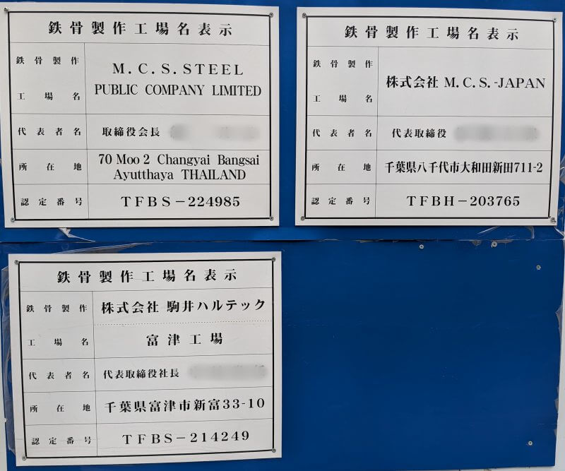 以下、現地に掲示されていた、鉄骨制作工場の案内です。国外からは、タイのアユタヤのM.C.S. Steelの鉄骨制作工場が掲示されていました。私は鉄骨制作工場に関しては詳しくないので、掲示されたあった写真を載せておきます。