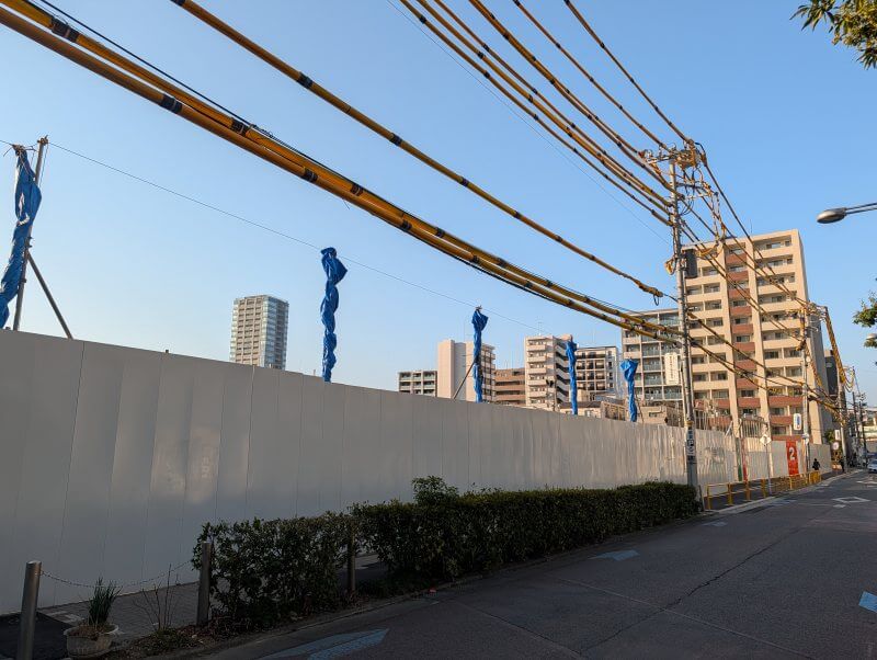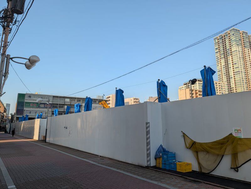 白金商店街の北側から、再開発の敷地を見た様子です。