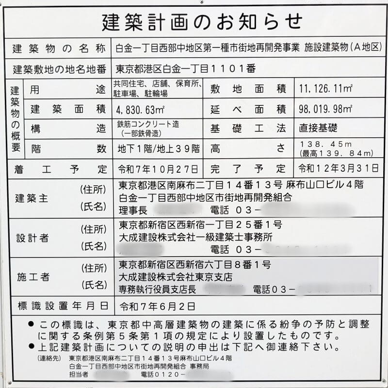 名称:白金一丁目西部中地区第一種市街地再開発事業(A地区)
