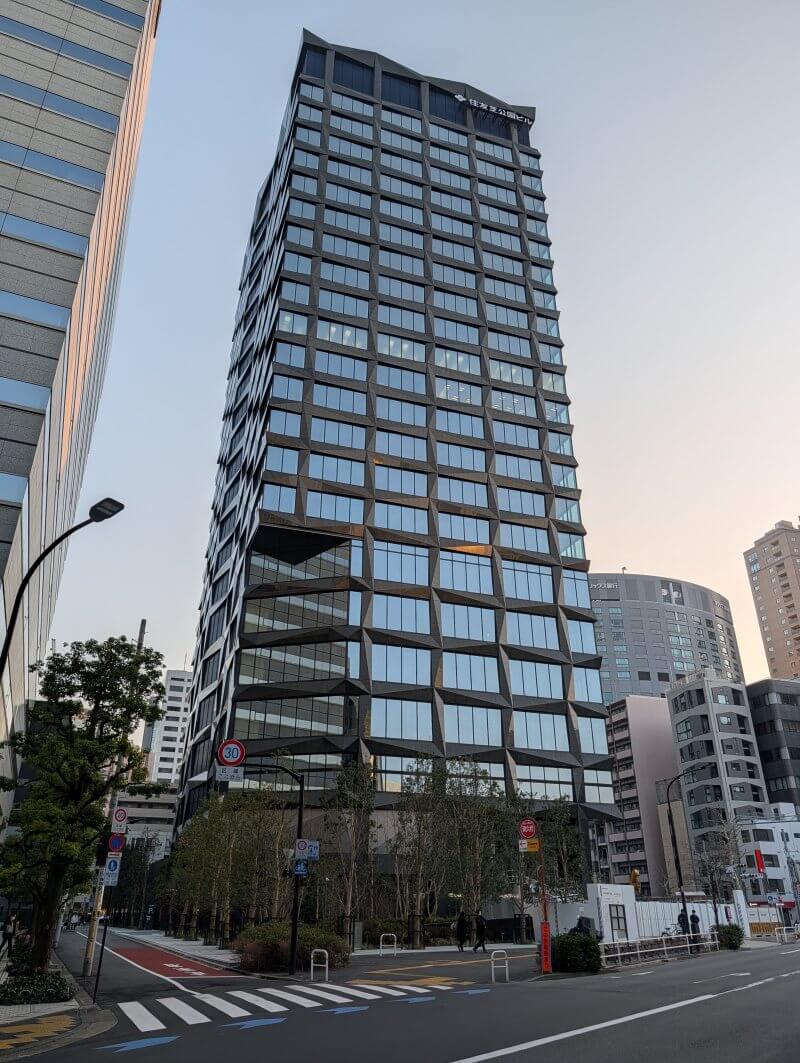 芝公園駅の傍で建設中の、21階116m「住友芝公園ビル」((仮称)芝二丁目計画)の様子です。建物は、2026年1月に完成していましたが、芝公園駅との地下通路はまだ工事中でした。