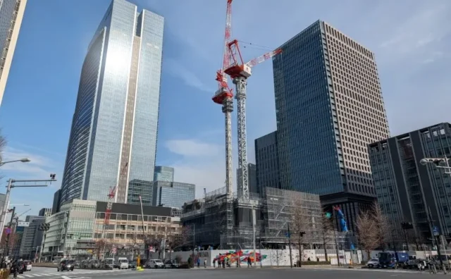 2026年1月15日撮影です。「東京ミッドタウン八重洲」の南側で行われている、43階223m「八重洲二丁目中地区第一種市街地再開発事業」の様子です。敷地の南側の劇場が入る付近で鉄骨が出現していましたが、敷地北側のオフィスが入るエリアの地上部...